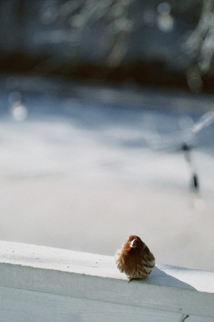 house finch, sunbathing.